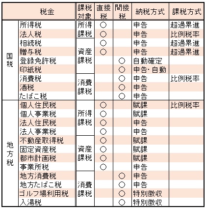 税金の分類表