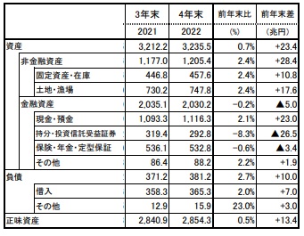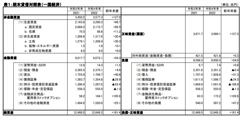 - 特に土地は平成19年末以来の1,300兆円超えになりました。