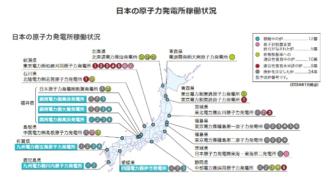 国内全19の原子力発電所(2024年1月現在稼働中の炉12基)はすべて核分裂炉を使用しています。核分裂炉では、ウラン235の原子核に中性子を当てて核を分裂させ、同時に発生する熱で発電する仕組みになっています。原子力発電所で利用するウランの内訳は、核分裂しにくいウラン238が95パーセント以上を占め、残りの数パーセントを核分裂しやすいウラン235とすることで、ゆっくりと時間をかけた核分裂にして安全性を確保するようにしています。
